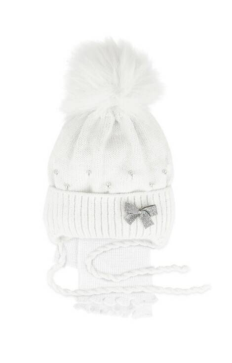 Czapka dla dziewczynki, do kompletu szalik. Czapka zdobiona włochatym pomponem. Idealna na chłodne dni