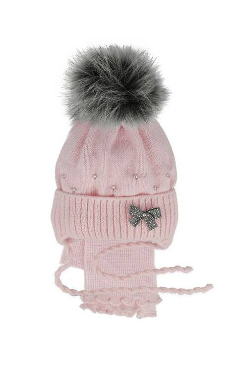 48-302 Komplet czapka+szalik AJS pudrowy-różowy