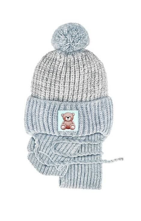 48-318 Komplet czapka+golf AJS błękitny melanż