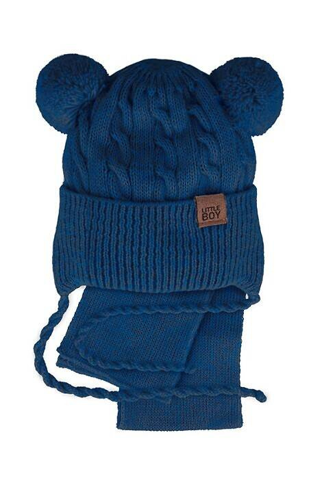 Czapka wiązana pod szyją, do kompletu szalik. Od wewnątrz podszyta bawełną. Model z dwoma pomponami i z wywijanym otokiem.  Idealny na chłodne dni