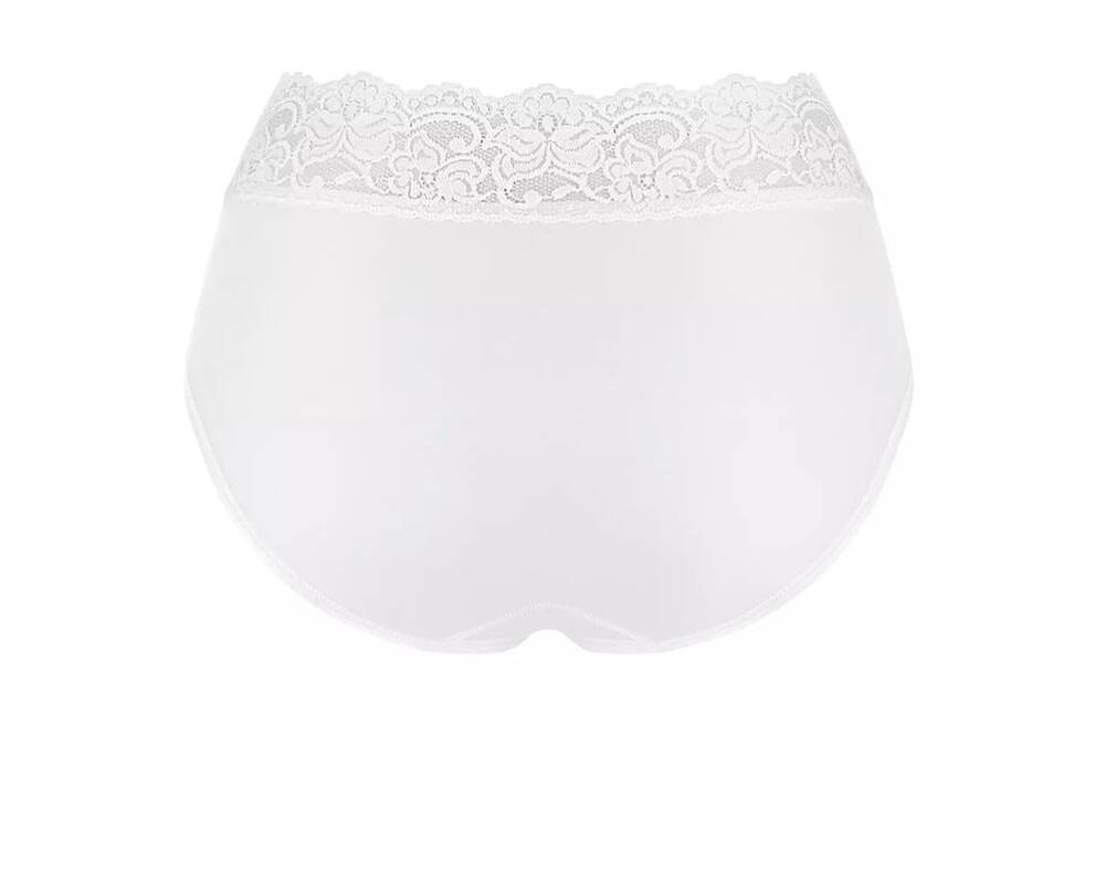 Figi damskie typu midi. Wykonane z miękkiej bawełny i delikatnej mikrofibry. Klasyczny krój z wysokim stanem i szerszymi bokami. Wykończone koronką.