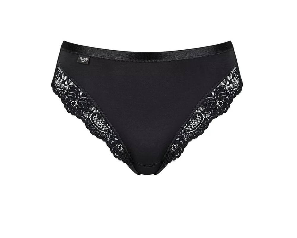 Figi damskie tai typu high leg. Wykonane z miękkiej bawełny i delikatnej mikrofibry. Klasyczny krój szerszymi bokami. Wykończone koronką.