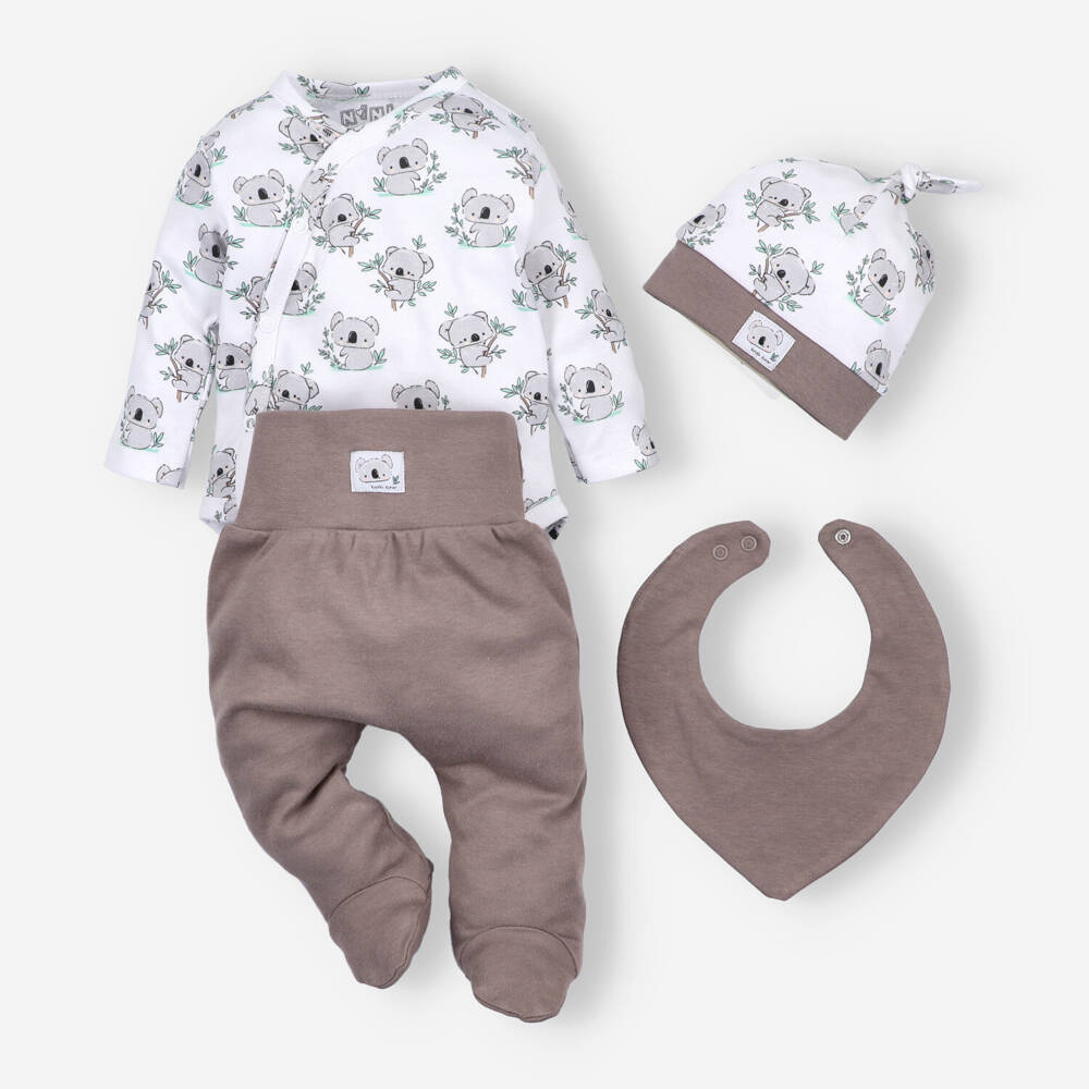 Zestaw wyprawkowy, który składa się z body, śpiocha, kaftana, łapek niedrapek i czapki. Ubranka z 100% bawełny z certyfikatem Bezpieczne dla Dziecka oraz Tekstylia Godne Zaufania. Wyprawka, której nie może zabraknąć u ciebie w domu!