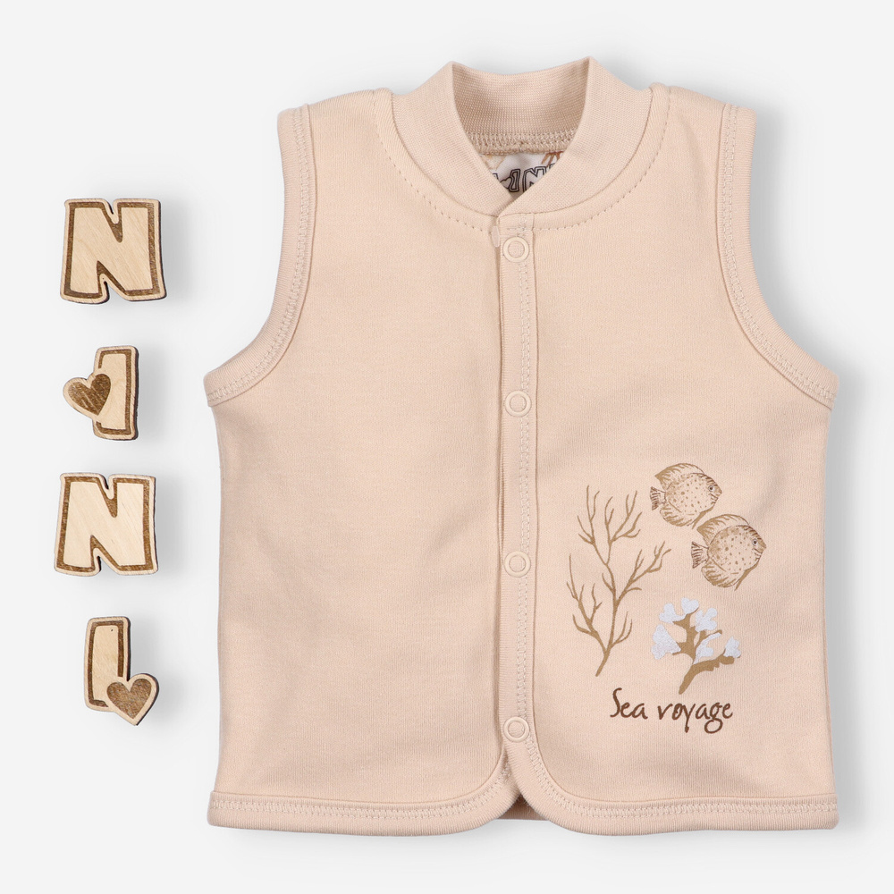 Dwuwarstwowa kamizelka uszyta z miękkiej i przyjemnej w dotyku bawełny organicznej. Krój umożliwia całkowite rozpięcie, przez co ubranko jest funkcjonalne i wygodne. Bezniklowe napy i delikatne, miękkie lamówki to dodatkowe atuty ubranka. Marka NINI jako jedna z niewielu w Polsce posiada międzynarodowy certyfikat OEKO-TEX STANDARD 100, który potwierdza, że jej wyroby spełniają najwyższe normy bezpieczeństwa dla niemowląt Kupując ubranka NINI dbasz o środowisko oraz bezpieczeństwo i zdrowie swoich dzieci.