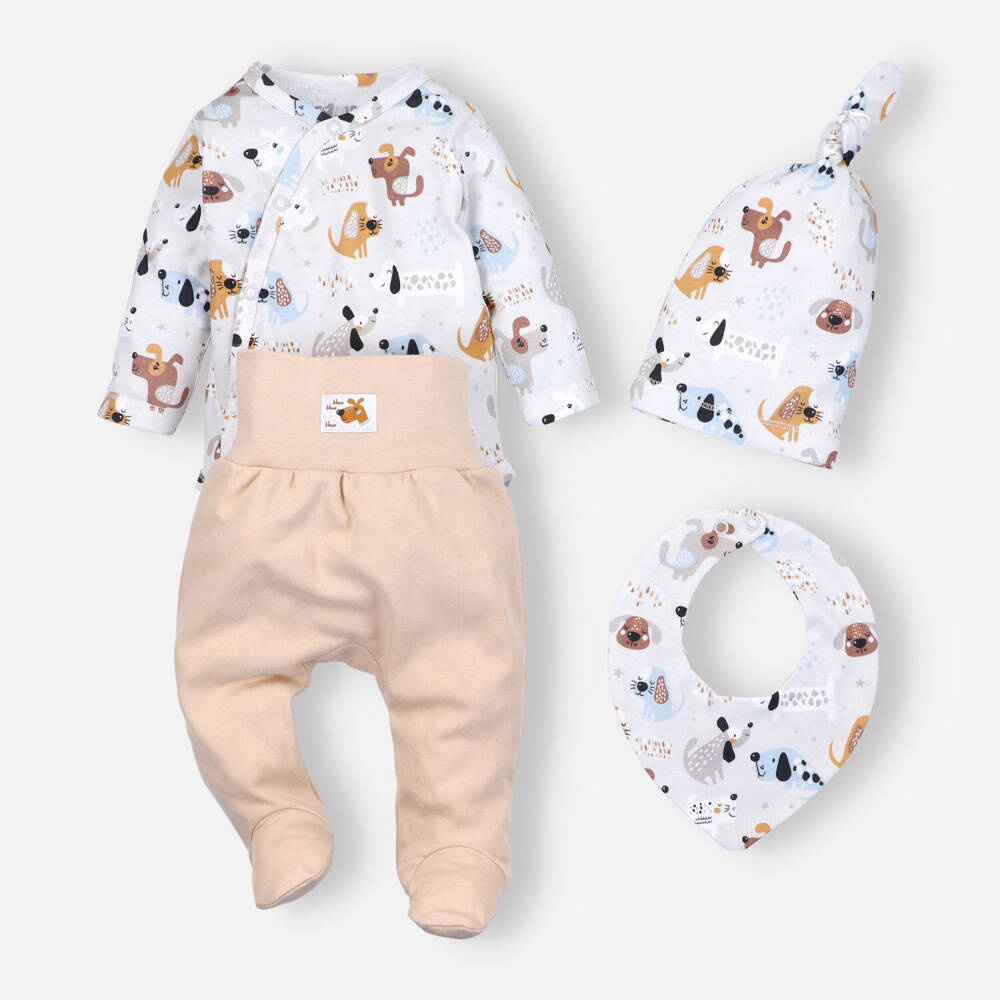 ABK-0028/PIE Psiaki Komplet niemowlęcy z bawełny organicznej Nini beżowy