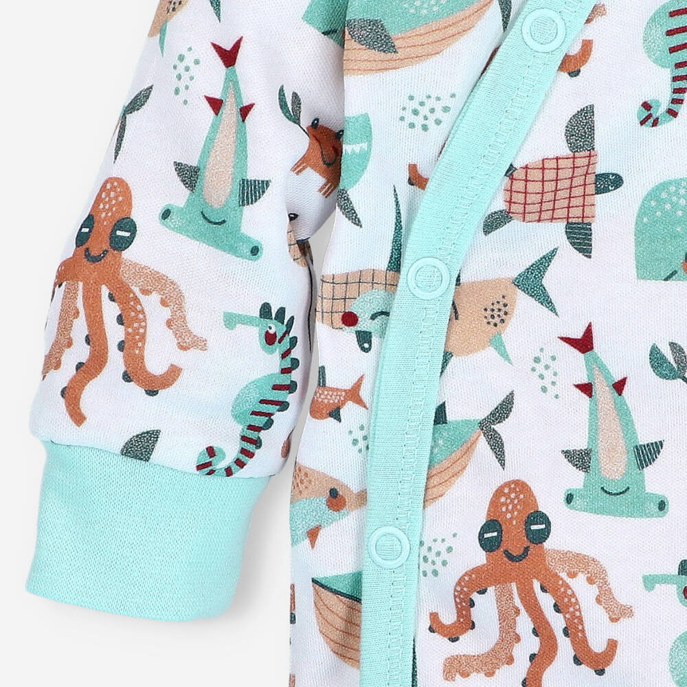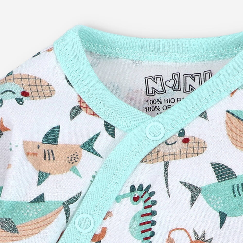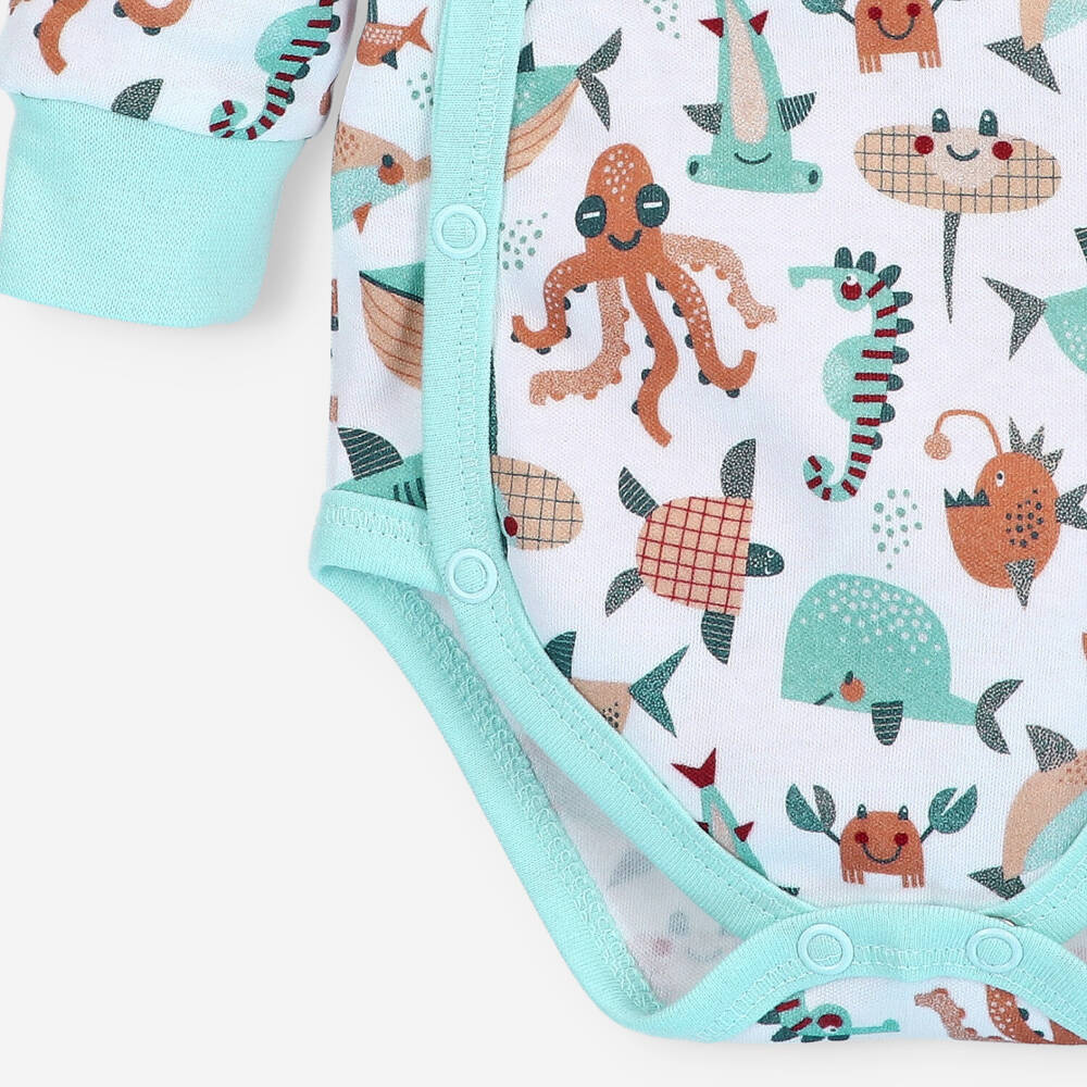 ABN-4087/MOR Morskie Zwierzątka Body kopertowe z bawełny organicznej Nini druk