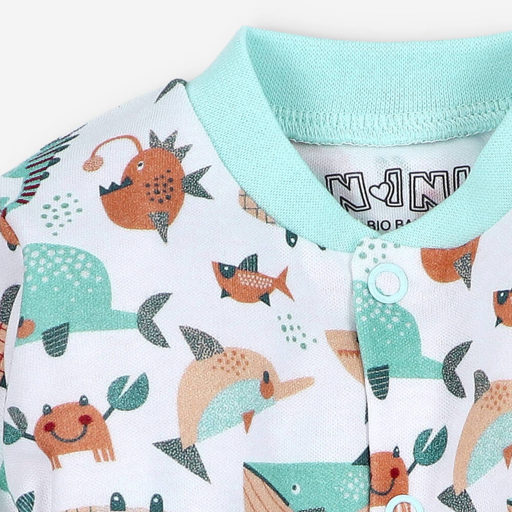 Morskie Zwierzątka Kaftanik niemowlęcy z bawełny organicznej Nini druk
