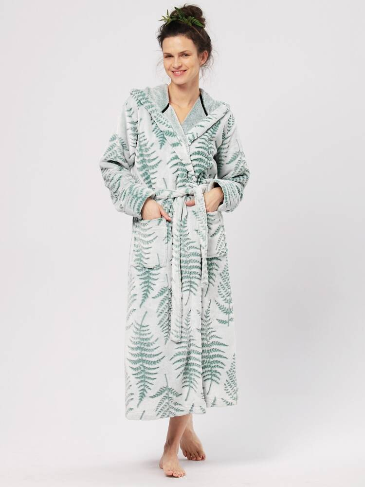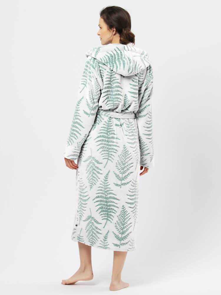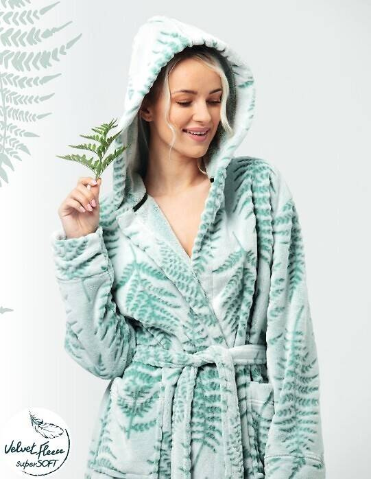 Długi szlafrok damski wykonany z miękkiej dzianiny typu soft ozdobione delikatnym wzorem