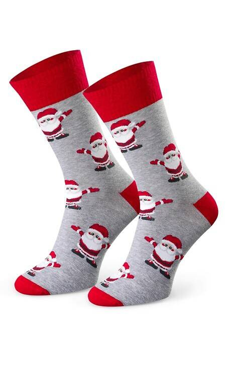 Bawełniane skarpety męskie ze świątecznymi motywami. Posiadają nieuciskający ściągacz dzięki czemu zapewniają wygodę i komfort użytkowania.