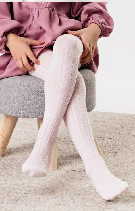 Rajstopy dziewczęce ozdobione wzorem w warkocze. Wykonane z delikatnej bawełny. Wyjątkowo miękkie i elastyczne.