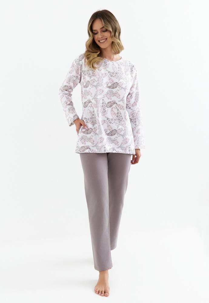 Piżama damska z wysokiej jakości bawełny drapanej. Wyjątkowo ciepła i miła dla skóry. Dłuższa koszulka o luźnym kroju z orientalnym printem. Dekolt okrągły.