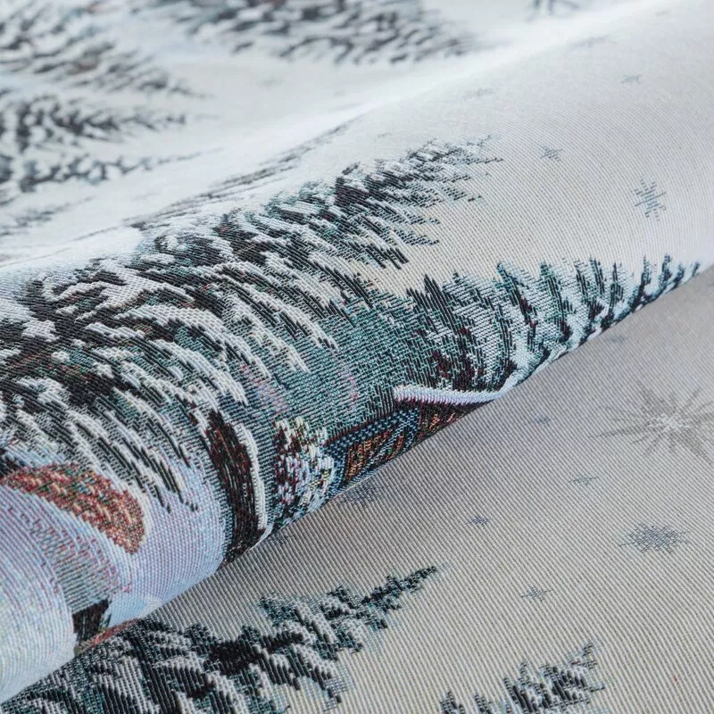 4051 Obrus świąteczny gobelinowy Śnieżny biały szary domek Eurofirany szary