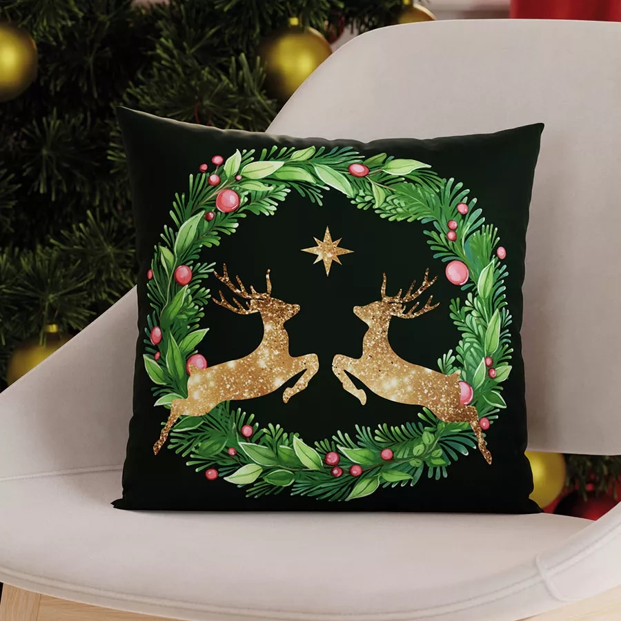 TBN293 Złote jelonki Poduszka świąteczna Markizeta