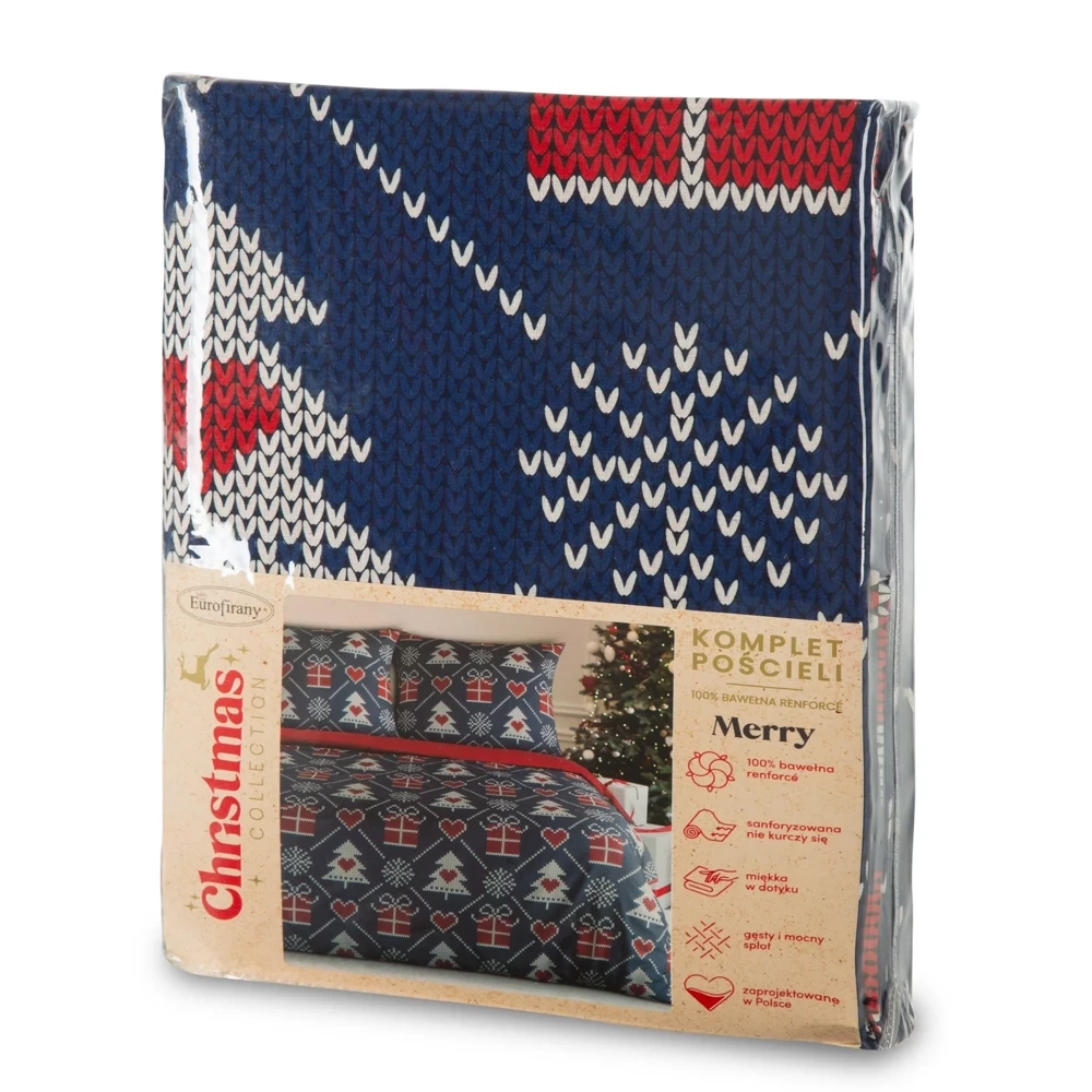 Merry Pościel świąteczna choinki z bawełny renforce Eurofirany - granatowy
