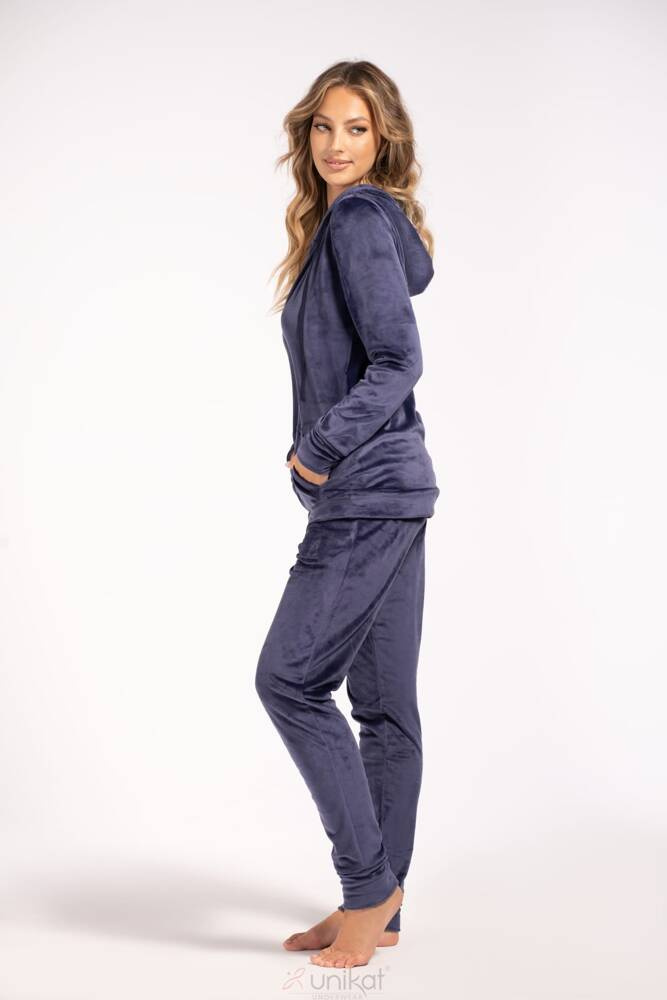 Komplet, która składa się z bluzy i spodni. Idealny zarówno do domowego leniuchowania i na wyjście na miasto. Bluza jest luźna i dzięki temu bardzo wygodna. Spodnie mają luźny krój a przy tym wpisują się w najmodniejsze trendy. Materiał jest gładki i wytrzymały. Aby komplet na długo zachował swój świetny stan, należy go prać według zaleceń na metce.