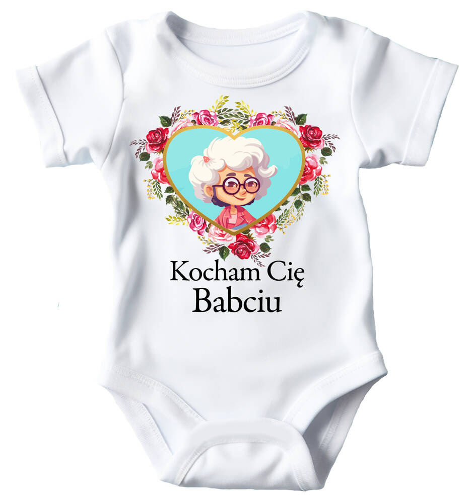 "Fajną babcię mam razem z dziadkiem o nią dbam" Moocha body krótki rękaw biały