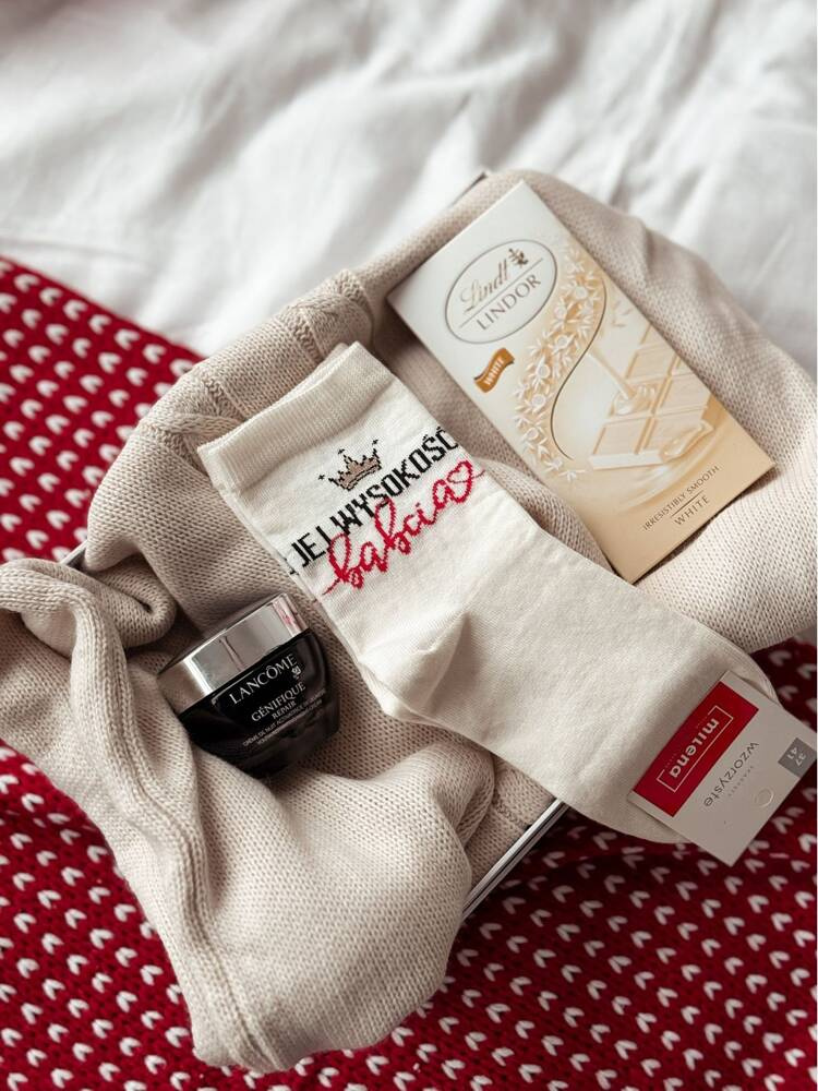Skarpety damskie wykonane z wysokiej jakości bawełny z ozdobnym napisem z okazji "Dnia Babci"