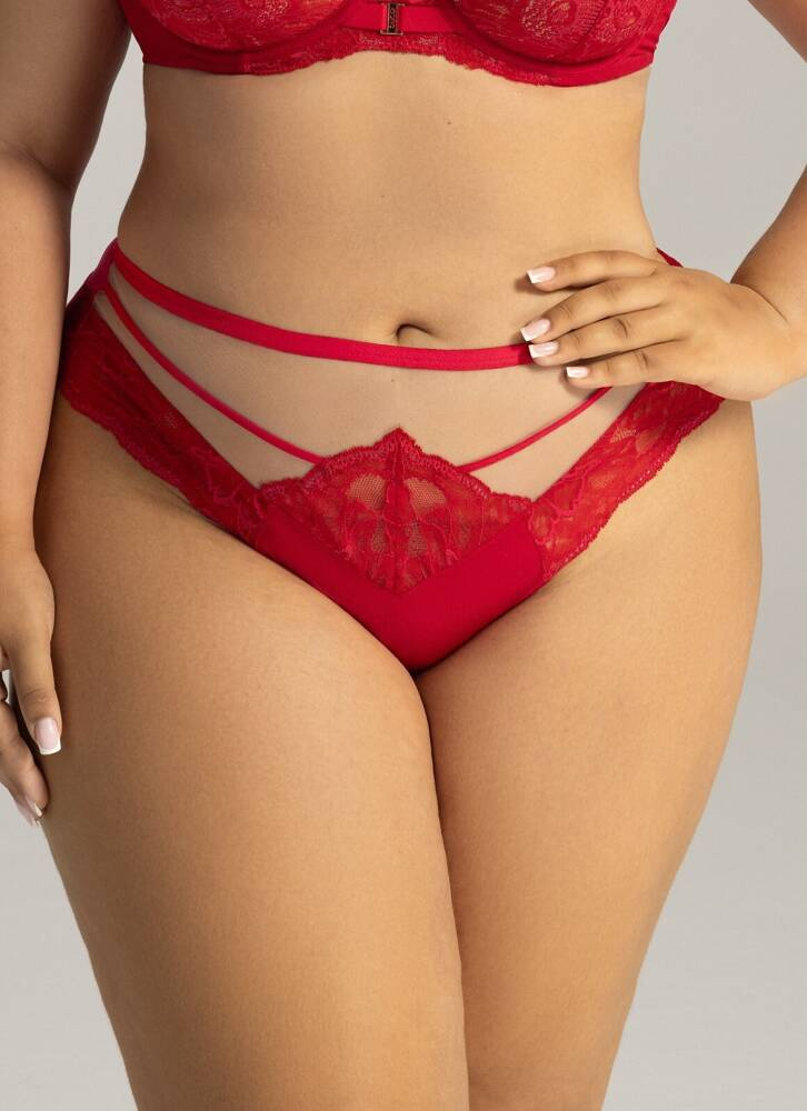 Zmysłowe figi damskie typu brazyliany. Wykonane z delikatnej siateczki w połączeniu z efektowną koronką o kwiatowym motywie. Tył koronkowy z siateczką
