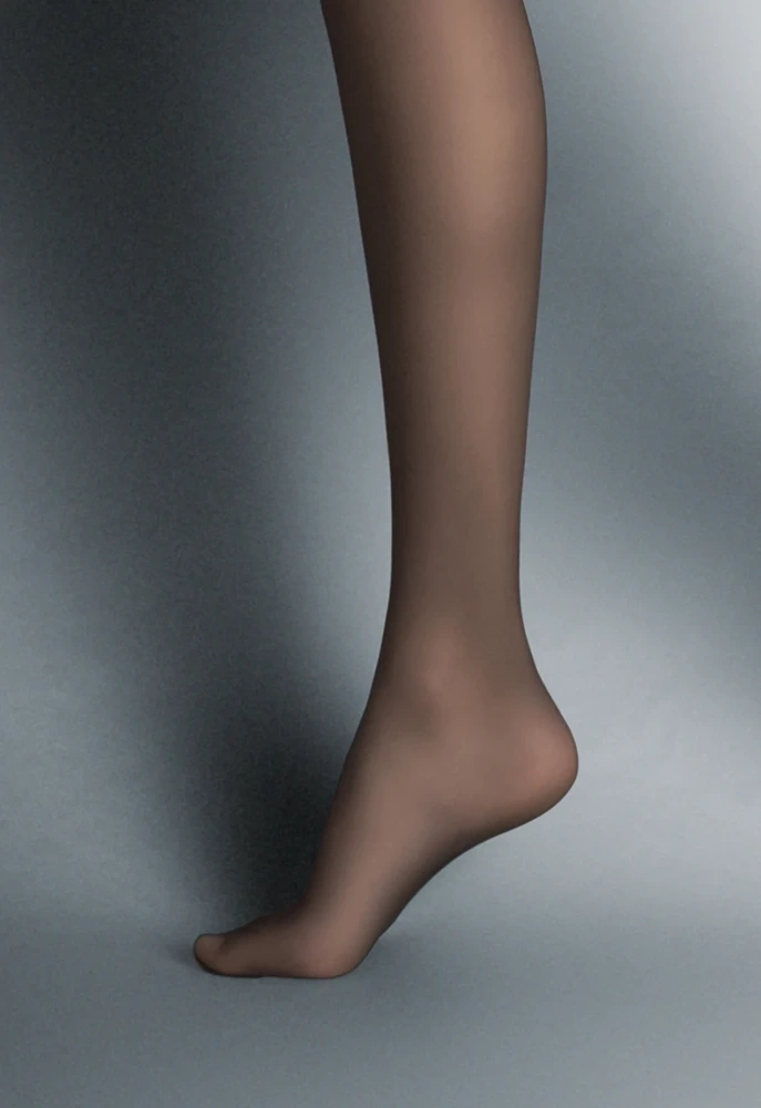 Kobiece pończochy grubości 15 den. Gładkie, matowe bez zaznaczonych wzmocnień na palcach. Ozdobione 10cm koronką typu flock w kolorze bordowym.