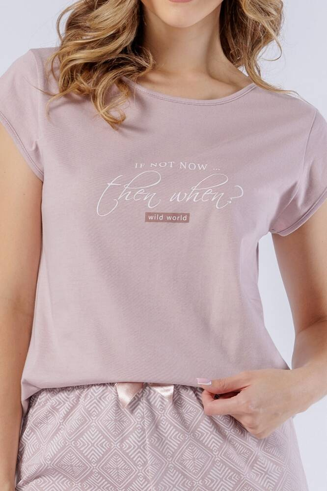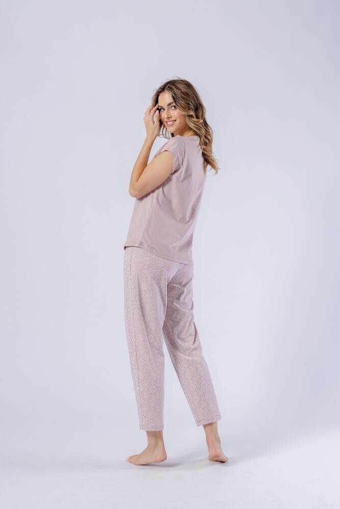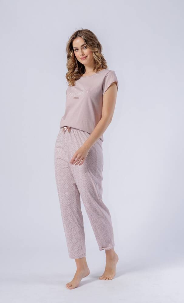 Piżama damska uszyta z wysokogatunkowej bawełny. Koszulka z krótkim rękawem , dekolt półokrągły.