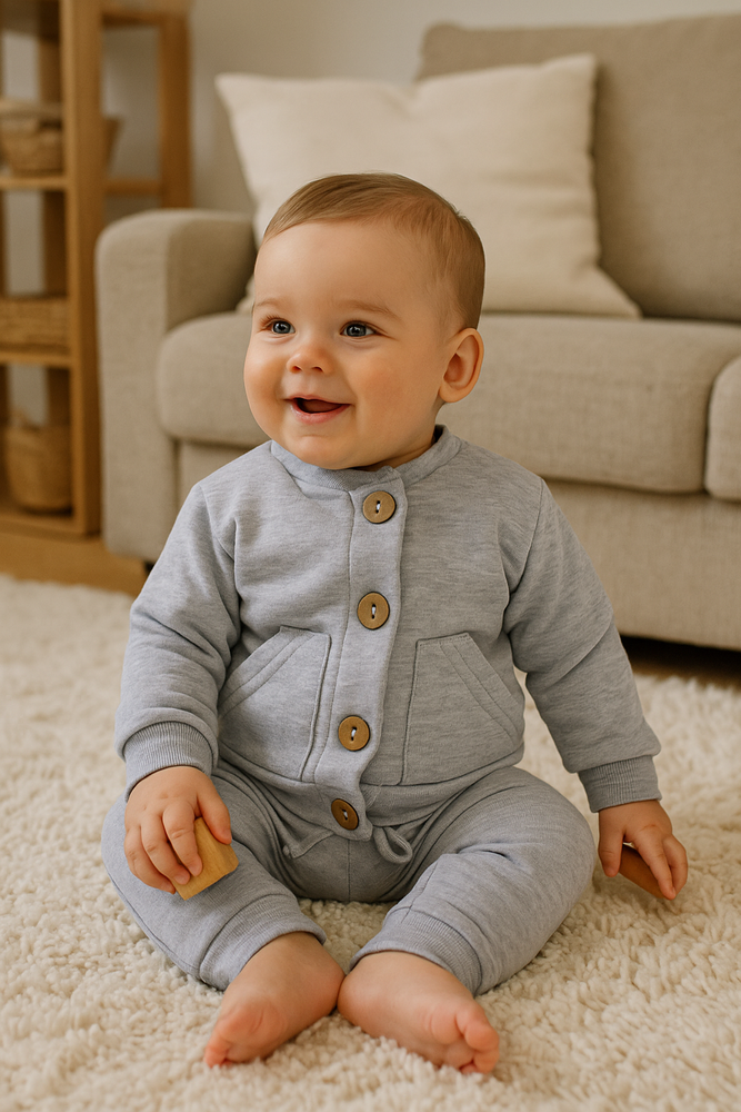 Dres wykonany z wysokiej jakości bawełny. Rękawki oraz nogawki zakończone ściągaczem. Spodnie dresowe typu pumpy.  Idealnie sprawdzi się podczas spacerów w chłodniejsze dni.
