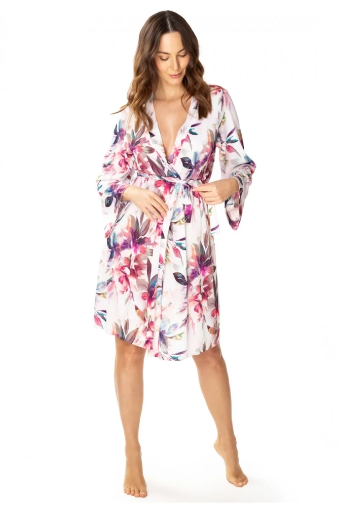 86663 Larisa Szlafrok peniuar Mewa druk w kwiaty