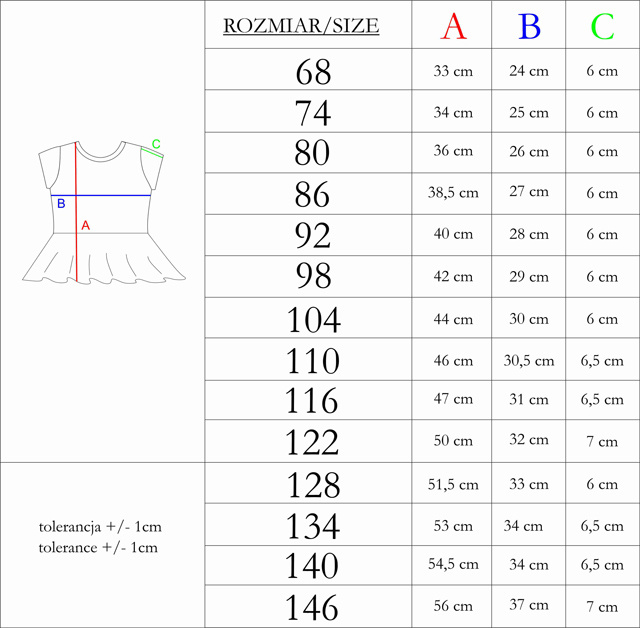 - Zakres rozmiarów 92-146.