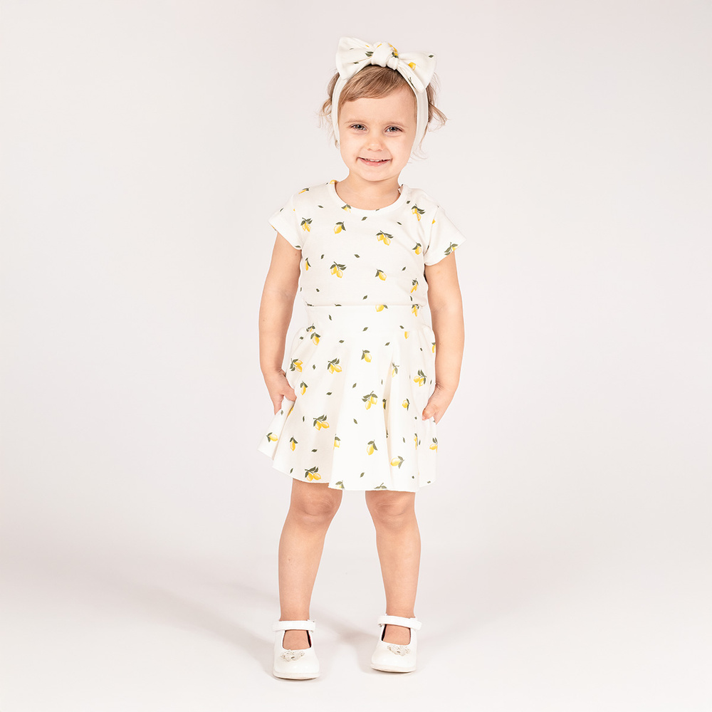 Wygodna, spódniczka ozdobiona falbankami.