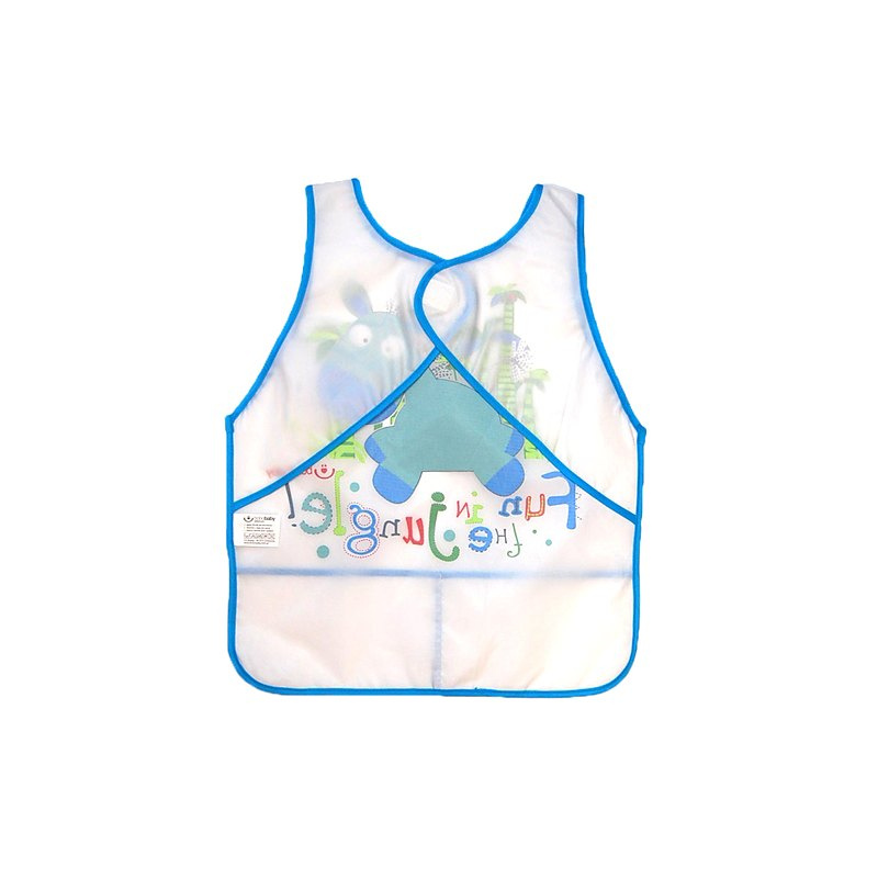 Śliniak wykonany z folii PEVA, która nie pozwala zabrudzeniom przesiąknąć na ubranko. Bezpieczny skład - śliniak wolny od BPA. Zapinany na rzep, posiada kieszeń podzieloną na dwie części.