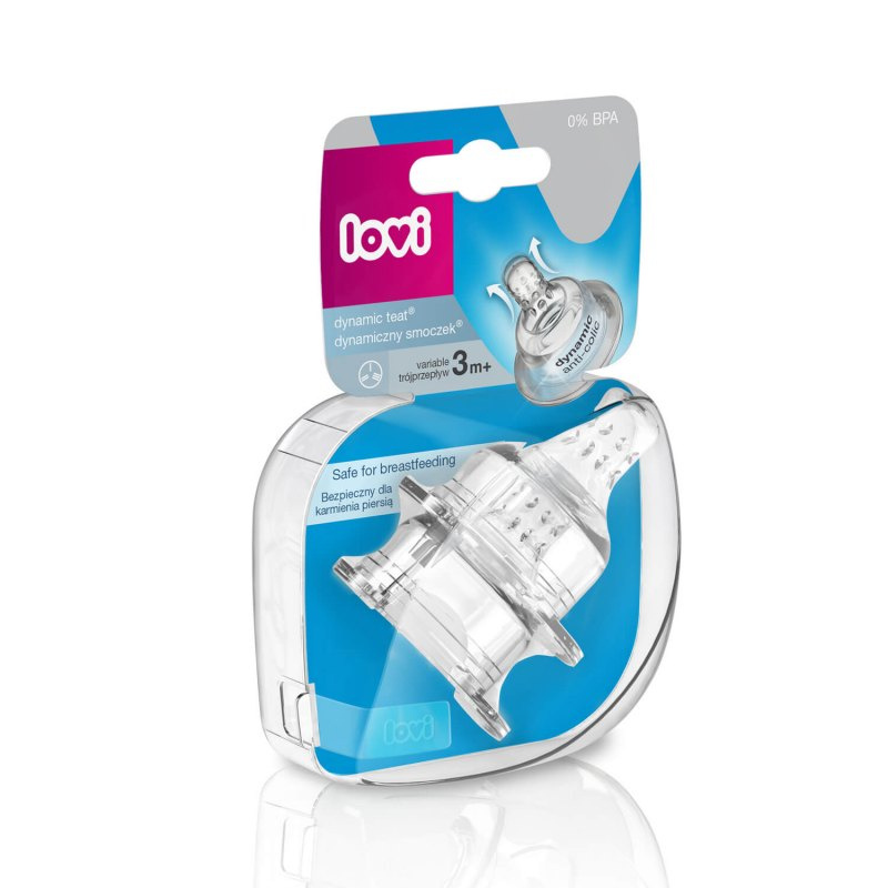 Dynamiczny smoczek do podawania odciągniętego mleka mamy. Jest zbudowany z niejednorodnych warstw silikonu: miękkiej, cienkiej, wydłużającej się końcówki i szerokiej, twardej, profilowanej podstawy. Dzięki temu nie zaburza odruchu ssania i nie koliduje z karmieniem piersią.