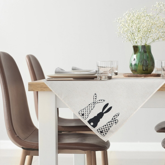 Elegancki obrus zdobiony subtelnym motywem wielkanocnym. Dzięki swojej srebrnej barwie i luksusowemu wykończeniu, doskonale sprawdzi się w każdym wnętrzu.