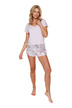 Dwuczęściowa piżamka firmy Doctor Nap wykonana z wysokogatunkowej wiskozy. Idealna na dobry sen i na wspaniały początek dnia przy pierwszej porannej kawie. Luźna bluza z krótkim rękawem, nie krępuje ruchów i ładnie podkreśla sylwetkę. Dekolt typu V, bluzka jednolita. Spodnie krótkie, wzorzyste, w pasie wykończone gumką. Przyjemna w dotyku piżama, utrzymana jest w ciekawej kolorystyce.