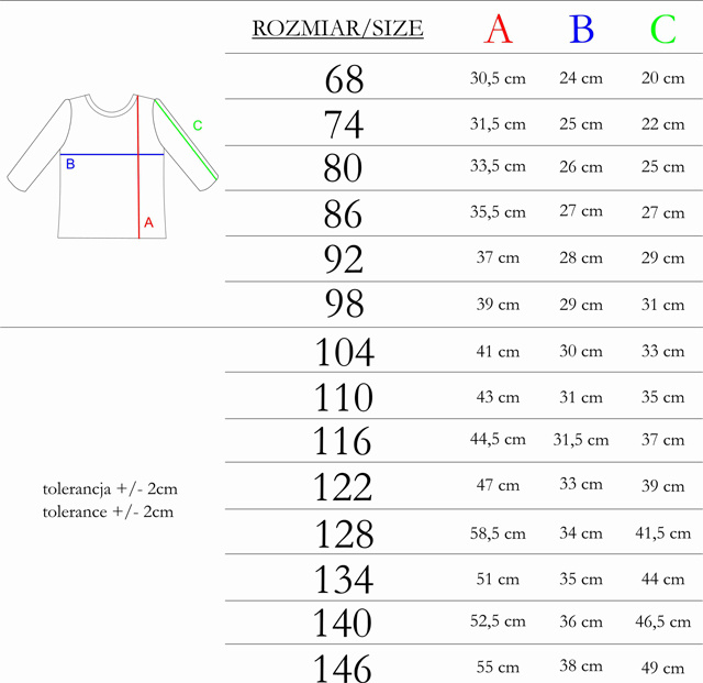 - Zakres rozmiarów 68-146.