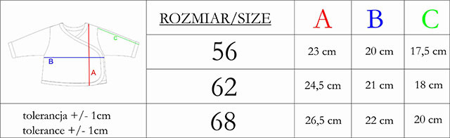 Wygodny kaftanik z długim rękawem. Kaftanik uszyty jest ze certyfikowanej bawełny, bezpiecznej dla delikatnej skóry malucha. Kopertowy krój ułatwia młodym rodzicom ubieranie i rozbieranie dziecka. Wszystkie zatrzaski wykonano z antyalergicznego, bezniklowego tworzywa.
