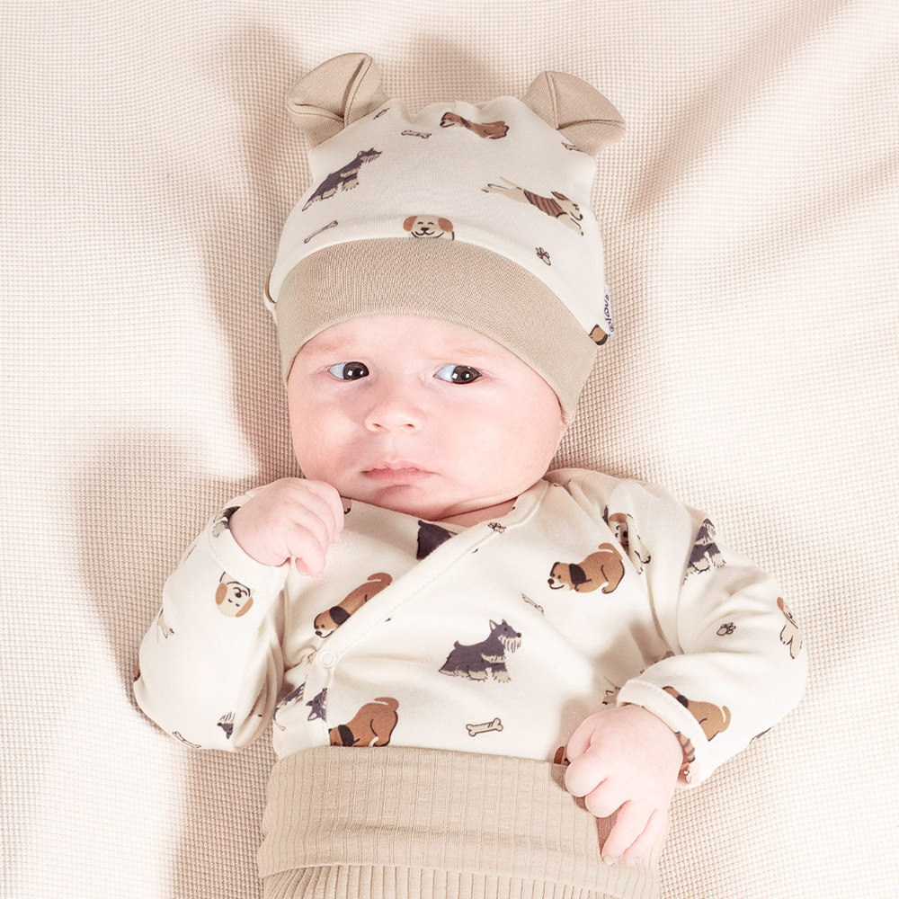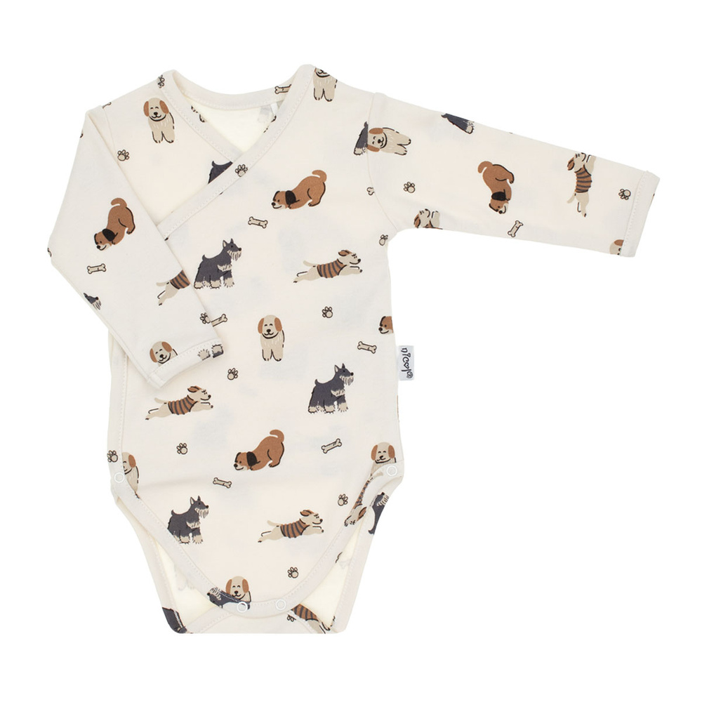 Kopertowe body z długim rękawem, uszyte z bawełny drukowanej. Produkt jest zapinany na bezniklowe napy. Model ten polecany jest dla noworodków, ponieważ zastosowane zapięcie ułatwia ubieranie dziecka. Materiał posiada certyfikat Oeko-Tex Standard 100 Tekstylia godne zaufania.