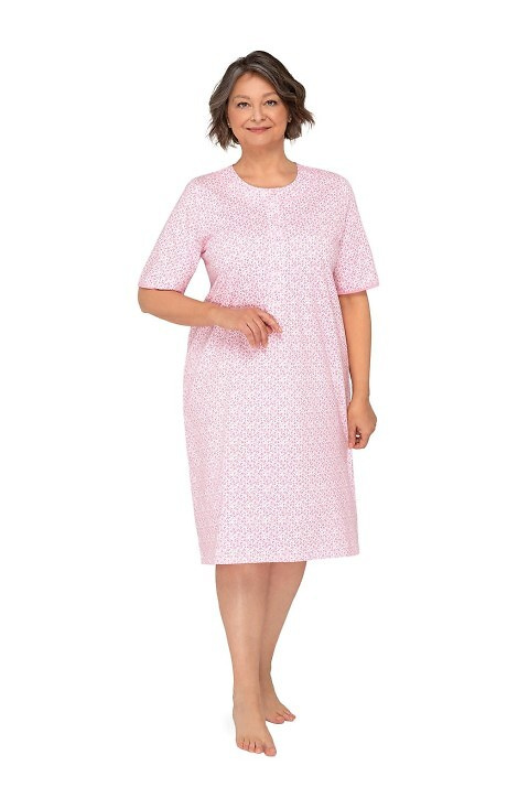 Damska rozpinana koszula nocna z  krótkim rękawem   to doskonała propozycja zarówno na lato, jak i na chłodniejsze noce. Przyjemna dla skóry 100% bawełna zapewni odpowiedni komfort termiczny, a delikatny, kwiatowy motyw przypadnie do gustu każdej kobiecie. Damska koszula nocna jest rozpinana na dekolcie. Ta bawełniana damska koszula do spania to gwarancja wygody i swobody każdej nocy.