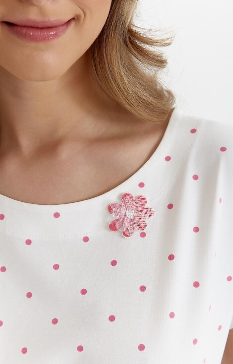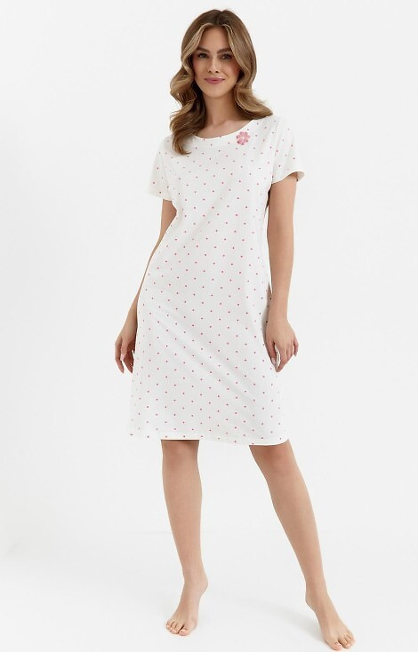 Koszula damska z krótkim rękawem wykonana z wysokiej jakości bawełny w kropki. Wyjątkowo miła dla skóry.