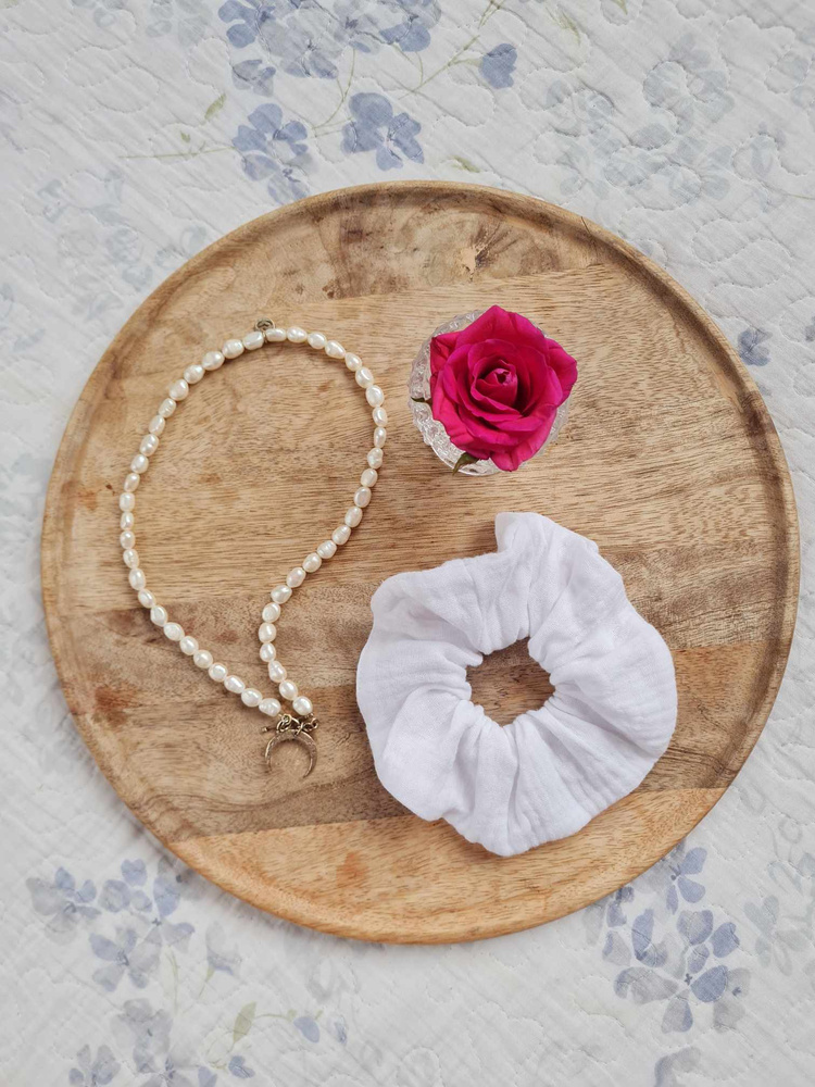 GM Scrunchie muślinowa gumka do włosów Marija - biały
