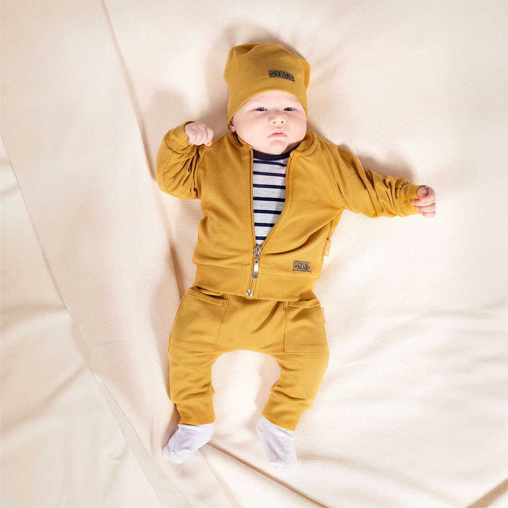 - Materiał: czapka,bluza,spodnie: 95% bawełna, 5%elastan, body: 100% bawełna
