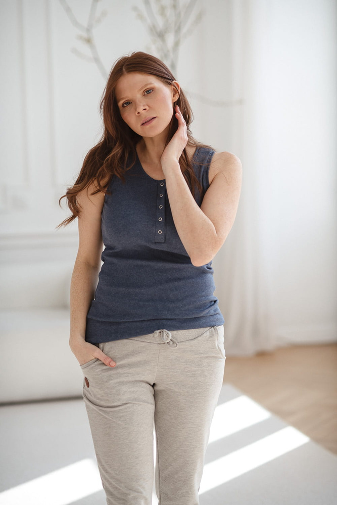 Tummy koszulka ciążowa do karmienia w prążki na ramiączkach Milk&Love jeans blue