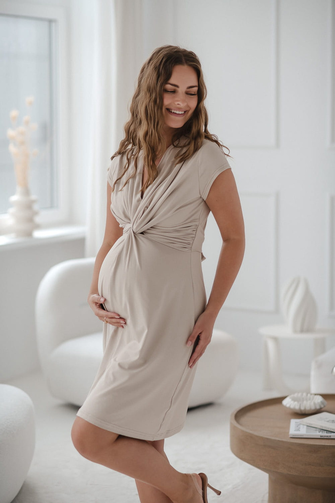 Loop sukienka ciążowa i do karmienia krótki rękaw Milk&Love jasny beż