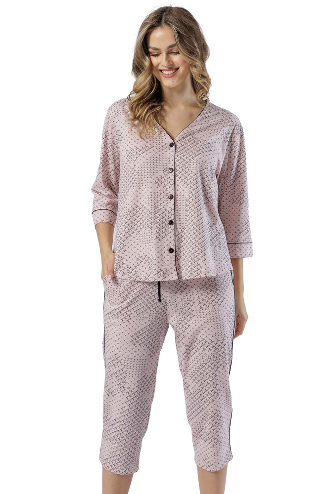 1559 Róża Piżama damska rozpinana Leveza - pudrowy róż/grafit
