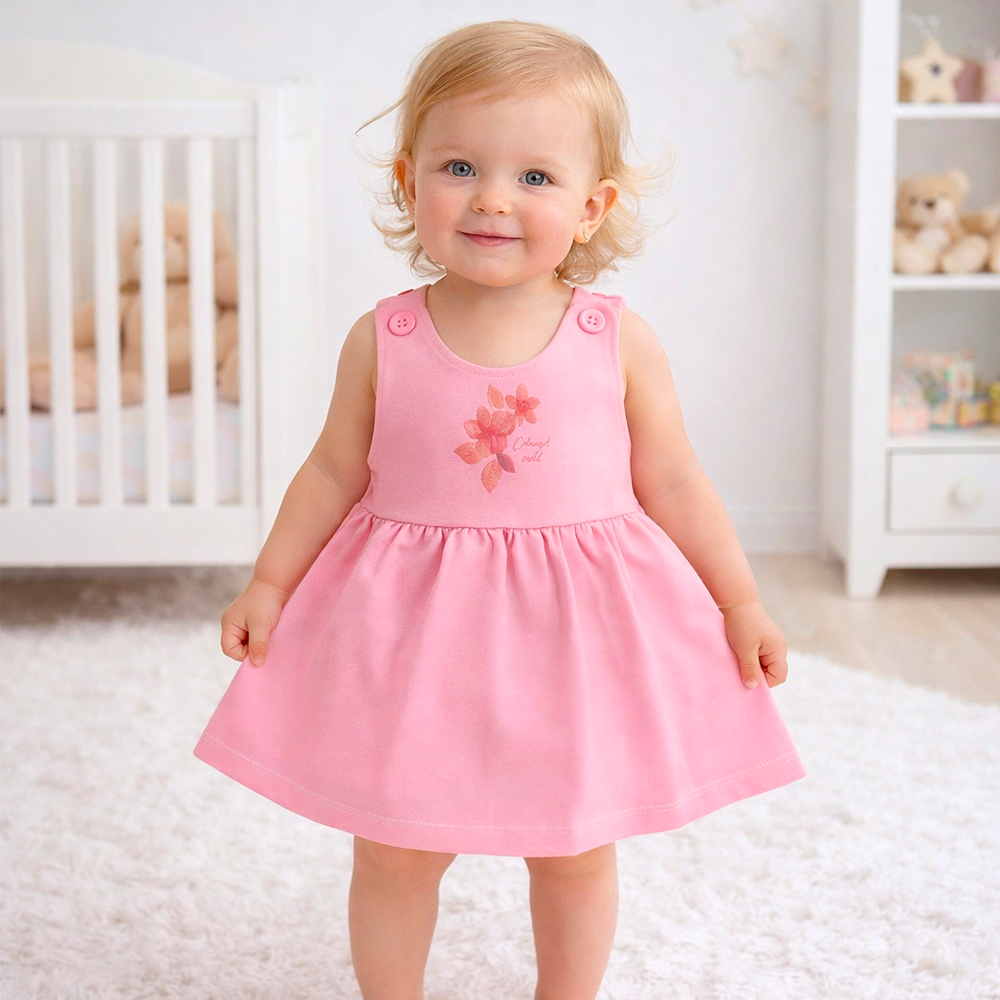 Dziewczęca sukienka z krótkim rękawem wykonana z wysokiej jakości bawełny.