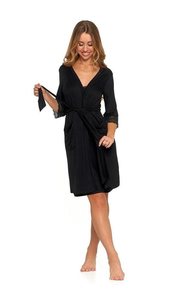 PDSZ4100-003 Szlafrok damski długi Moraj - czarny