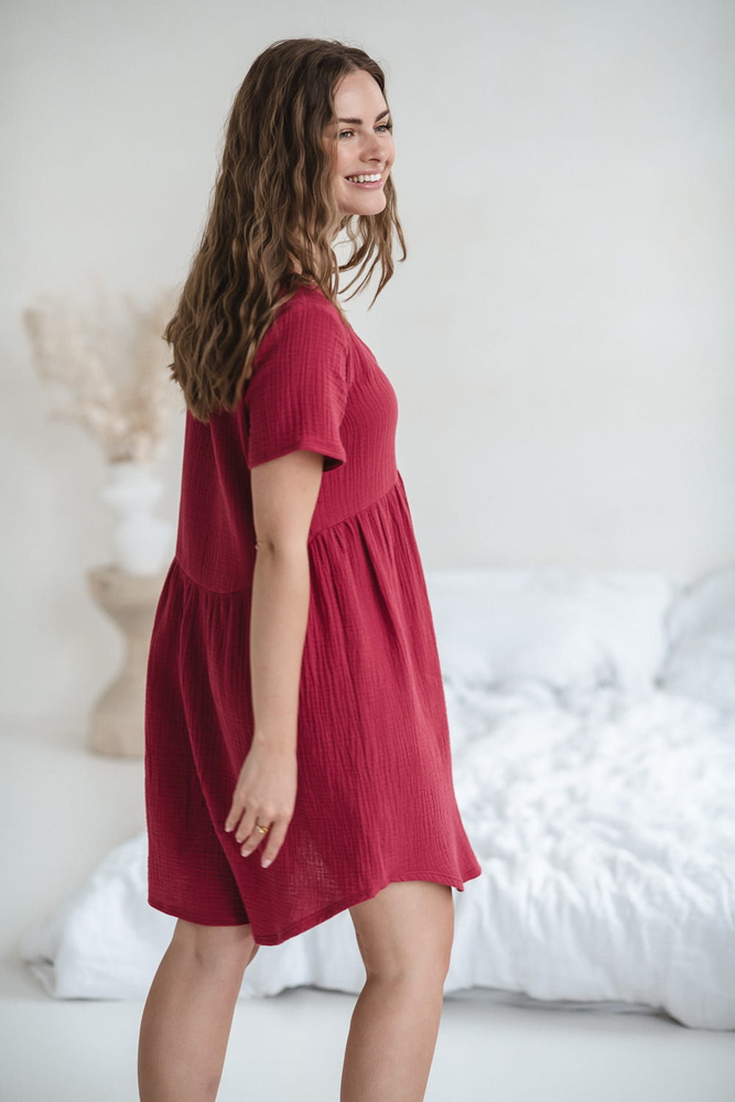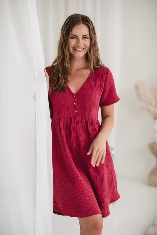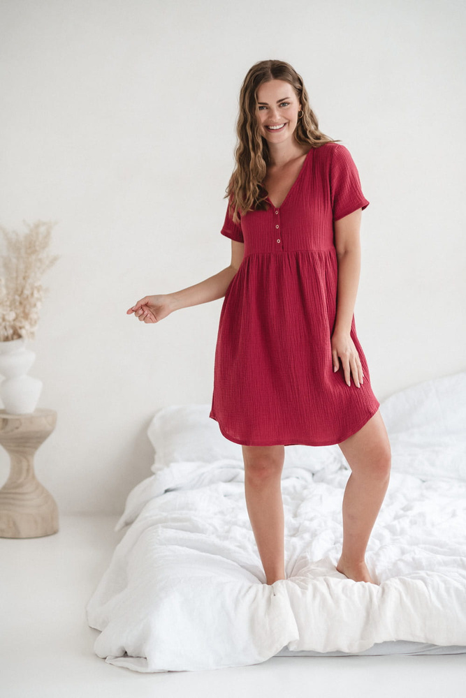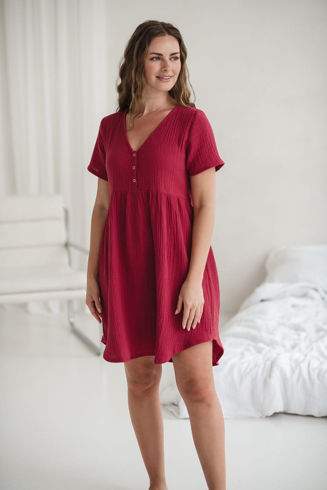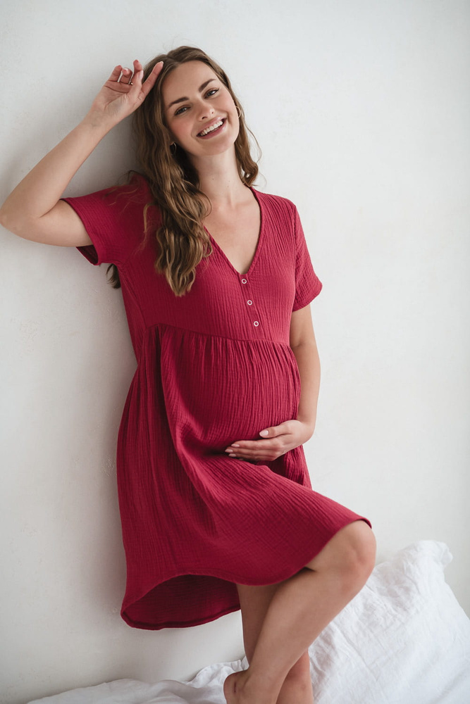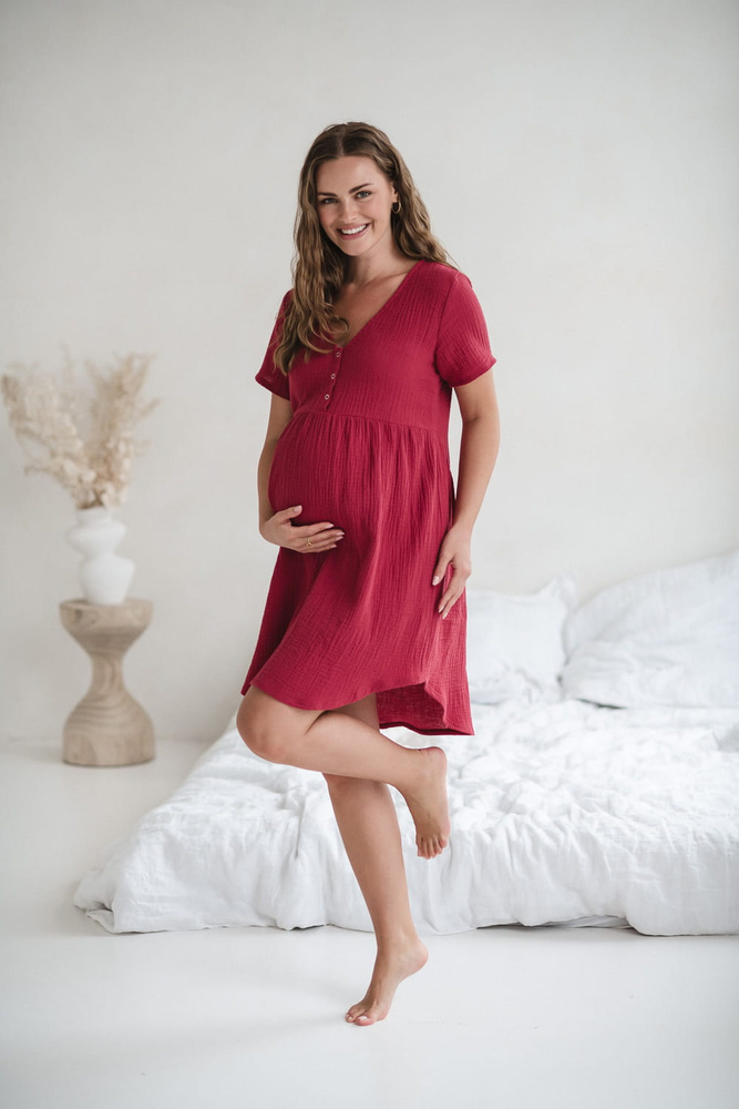 Aurora muślinowa koszula nocna ciążowa i do karmienia Milk&Love malinowy