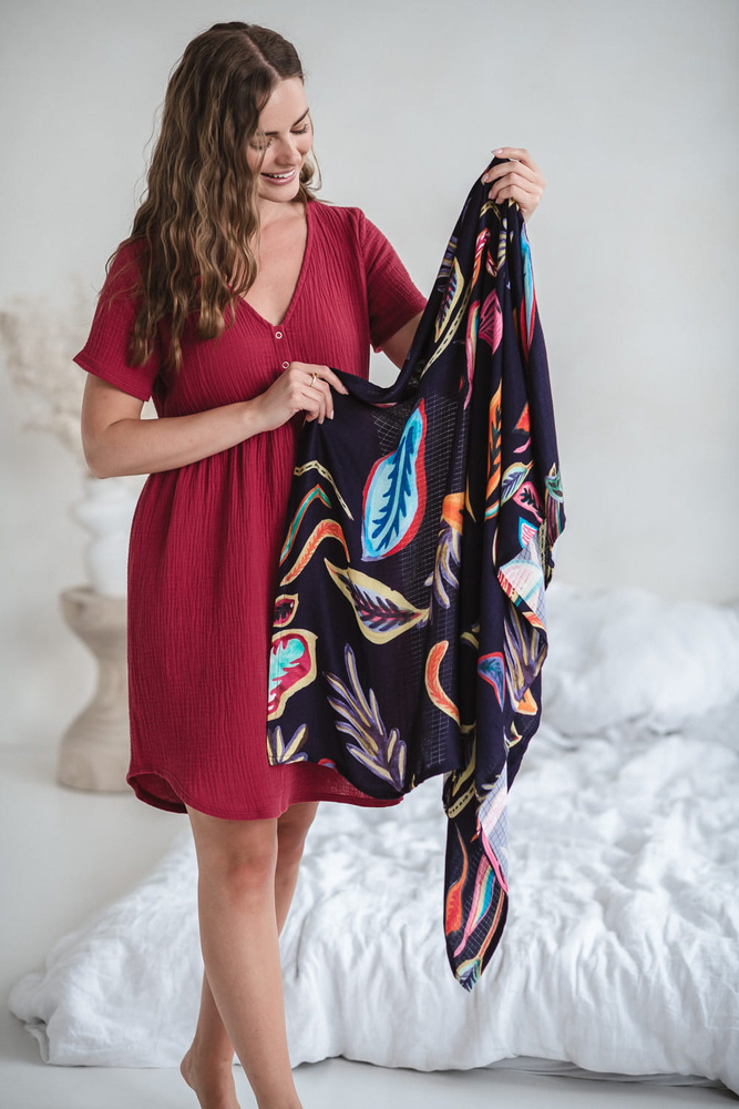 Koszula wykonana z eleganckiej ażurowej tkaniny. Połączenie kobiecego stylu i funkcjonalności. Wykonana w Polsce z najwyższej jakości materiałów, jest trwała i zachowa swój kształt nawet po wielokrotnym praniu. Koszula nocna Aurora to doskonały zakup dla mam szukających wygody i stylu na czas ciąży i karmienia piersią. Rozpinana na wysokości dekoltu dzięki praktycznym napom, koszula Aurora sprawia, że karmienie piersią staje się szybkie, wygodne i dyskretne – po prostu odepnij, nakarm i ciesz się każdą chwilą bliskości z maluszkiem. Wybierając rozmiar, kieruj się aktualnym rozmiarem, który nosisz. Koszula doskonale dopasowuje się do figury, zapewniając komfort w każdej chwili. Koszule mają oversizowy krój i dużą rozmiarówkę.