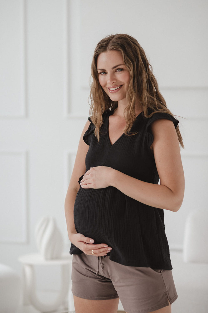 Niezwykle przyjemna i miła w dotyku bawełniana dzianina sprawia, że bluzka będzie idealna na cieplejsze dni i pozwoli skórze oddychać - idealna pod spód cieplejszej bluzy ciążowej/do karmienia