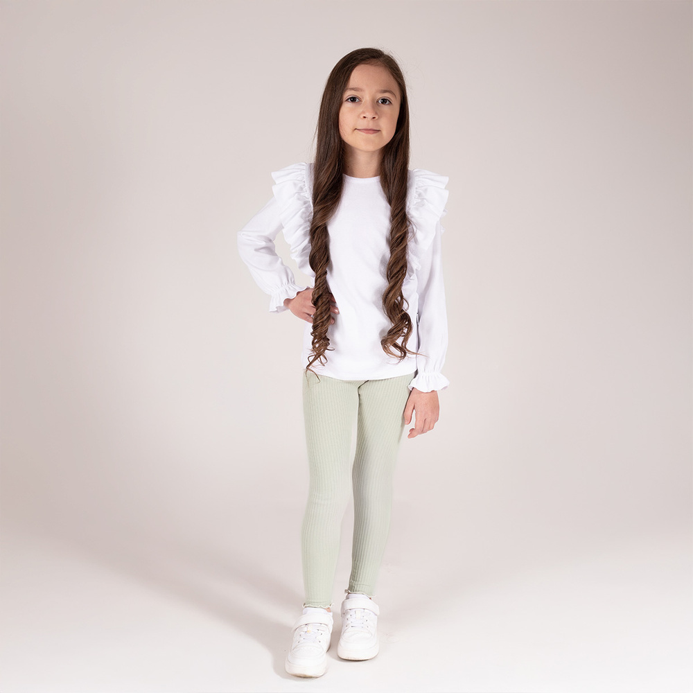 Dziewczęce legginsy. Ściągacz w pasie zapewnia odpowiednią przyczepność, nie wpływając na swobodę ruchów dziecka i jego komfort.