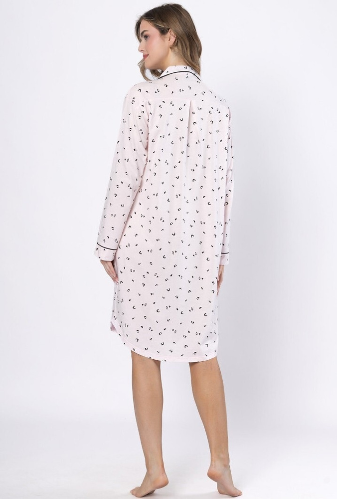 Koszula nocna Laveza Angela 1619 –jasny róz, bawełna, długi rękaw, zapięcie na guziki