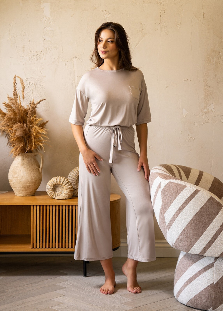 Piżama damska MK34 Only You beżowa Belle Reverie – wiskoza, krótki rękaw, lekka i zmysłowa